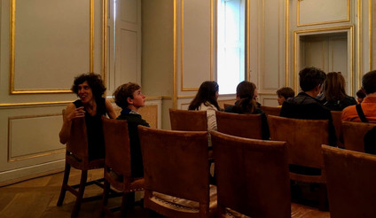 La narradora, una servidora, i una mica per casualitat: el dia anterior, per preparar la classe, vaig anar a veure la funció, i a l'acabar em vaig acostar a Christian Fuchs per preguntar-li si l'endemà també faria una introducció tan llarga i en anglès abans de la funció. Li vaig explicar que venia amb un grup de nens i nenes que no l'entenien l'anglès, i que potser una introducció com aquella els podia resultar pesada. No em va escoltar del tot. Em va interrompre i em va posar el text en danès a les mans tot dient: You read tomorrow!
